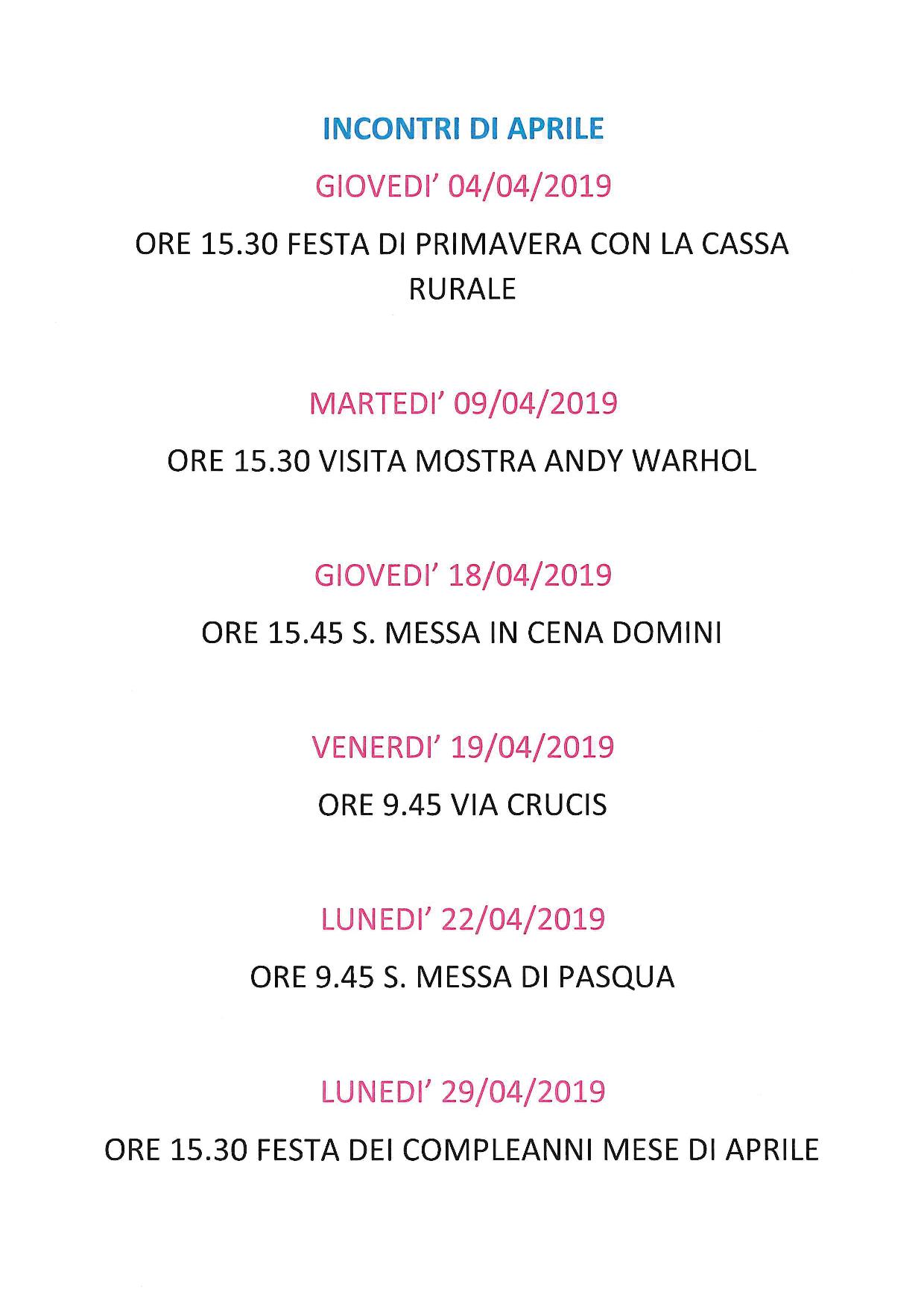 Pubblichiamo in allegato gli eventi organizzati dal servizio educativo per il mese di aprile
